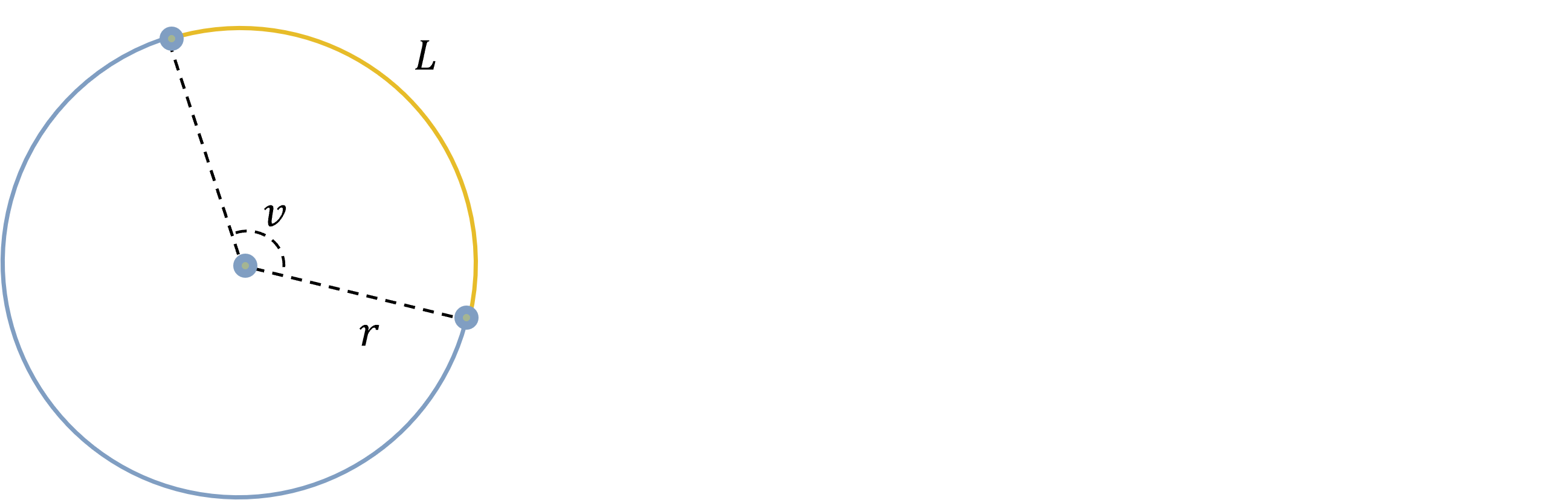 L er cirkelbuens længde, v er vinklen mellem de to radier, og r er radius.