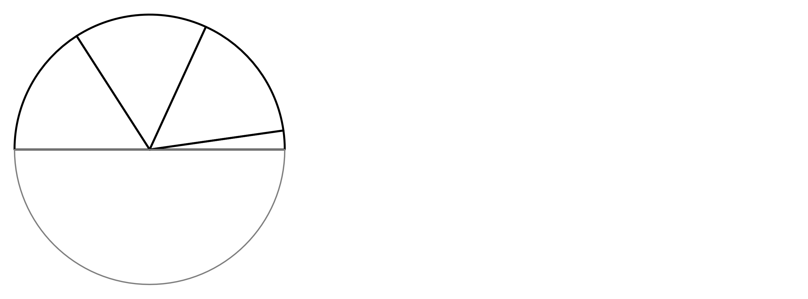 … 3,14 radier – et tal, der svarer til pi. Som vi har set, er omkredsen to gange pi. En halv omkreds er pi, og vinklen i en halv cirkel er 180 grader. 180 divideret med pi er 57,2958…, og derfor har en radian en vinkel på denne størrelse.