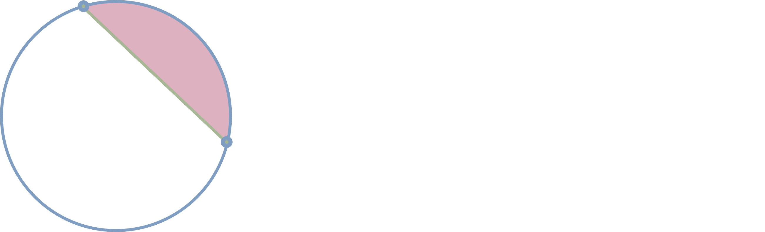 Et cirkelafsnit er det område mellem en korde og cirklens periferi, som vist med det lyserøde område her: