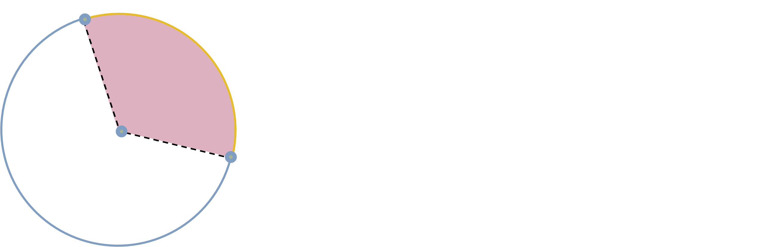 Et cirkeludsnit er det område mellem to radier og cirklens periferi, som vist med det lyserøde område her:
