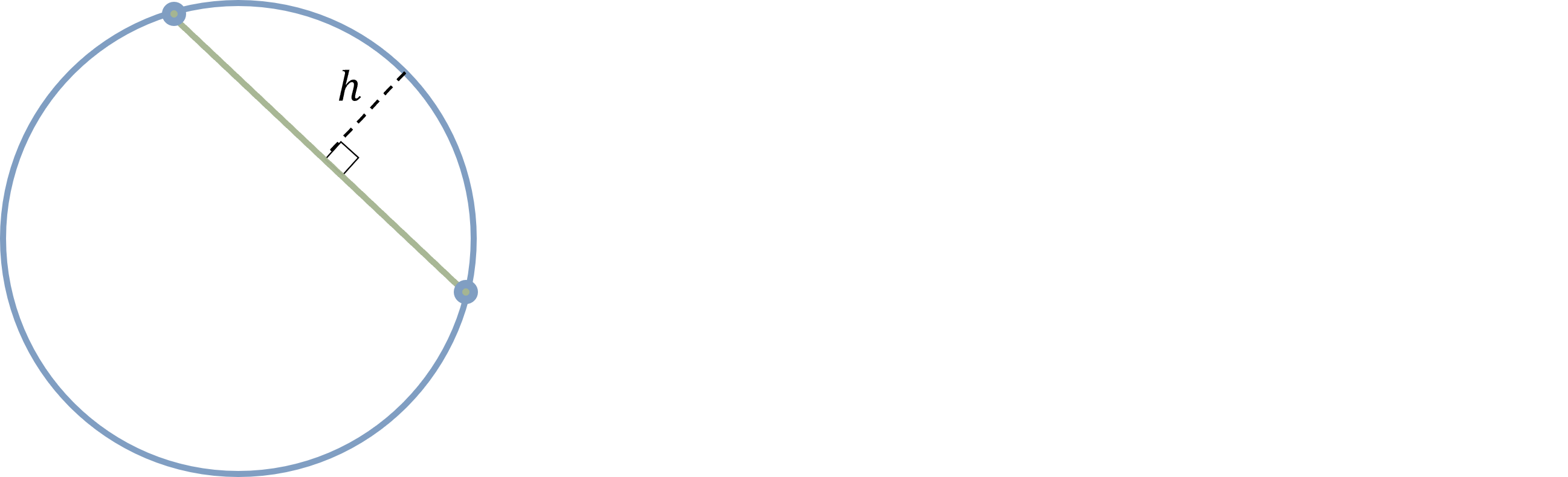 Pilhøjden i en cirkel er længste linje, som går vinkelret på korden fra periferien, som vist her:
